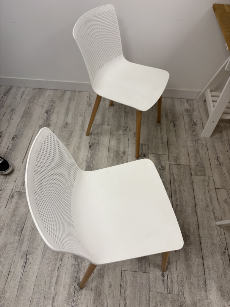 2 chaises piétements bois, assises PVC