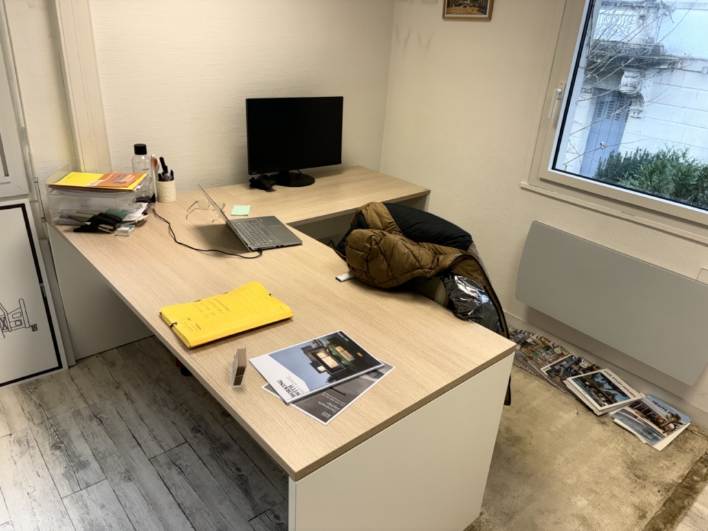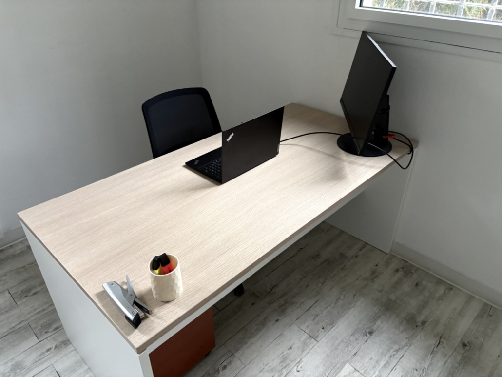 Un bureau avec retour en bois