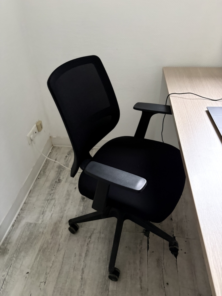 Une chaise de bureau sur roulettes avec accoudoir