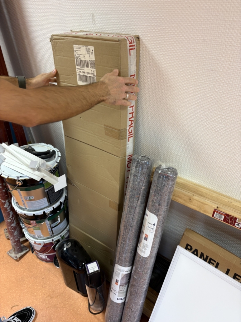 Un carton contenant un panneau LED