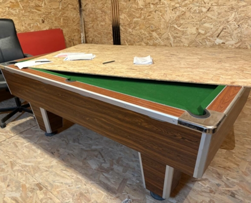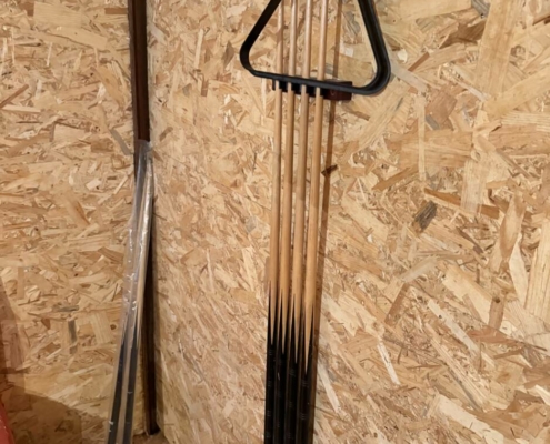 Une table de billard avec queues