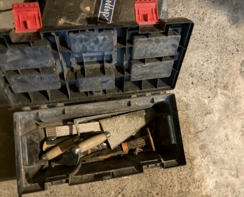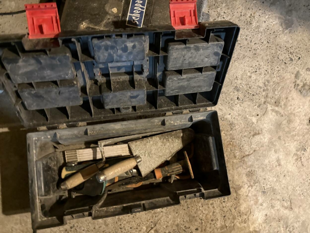 Une caisse à outils en plastique et son contenu