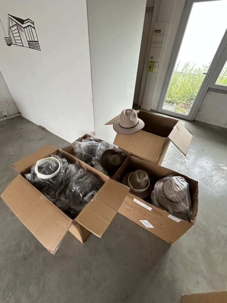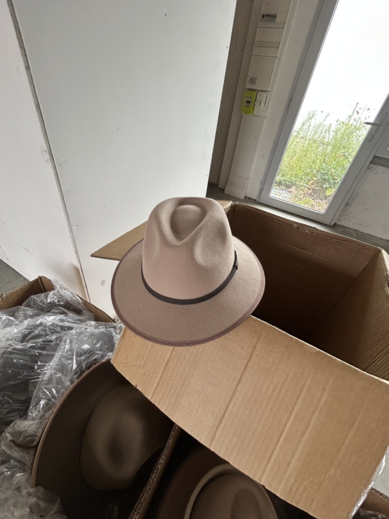 1 stock de grands chapeaux, laine mérinos australienne, 60 unités beige clair, beige foncé et couleur marron