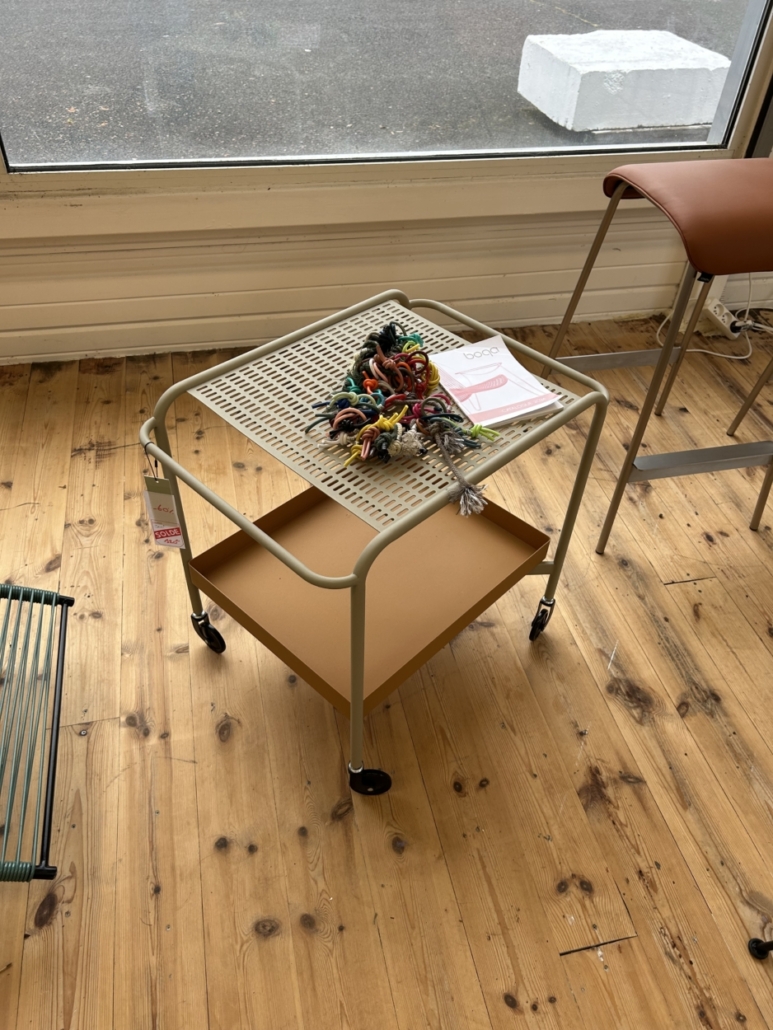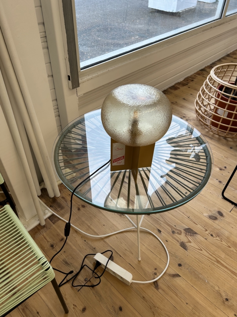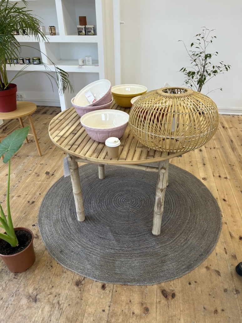 1 table basse plateau rond piètement plastique avec tressage PVC